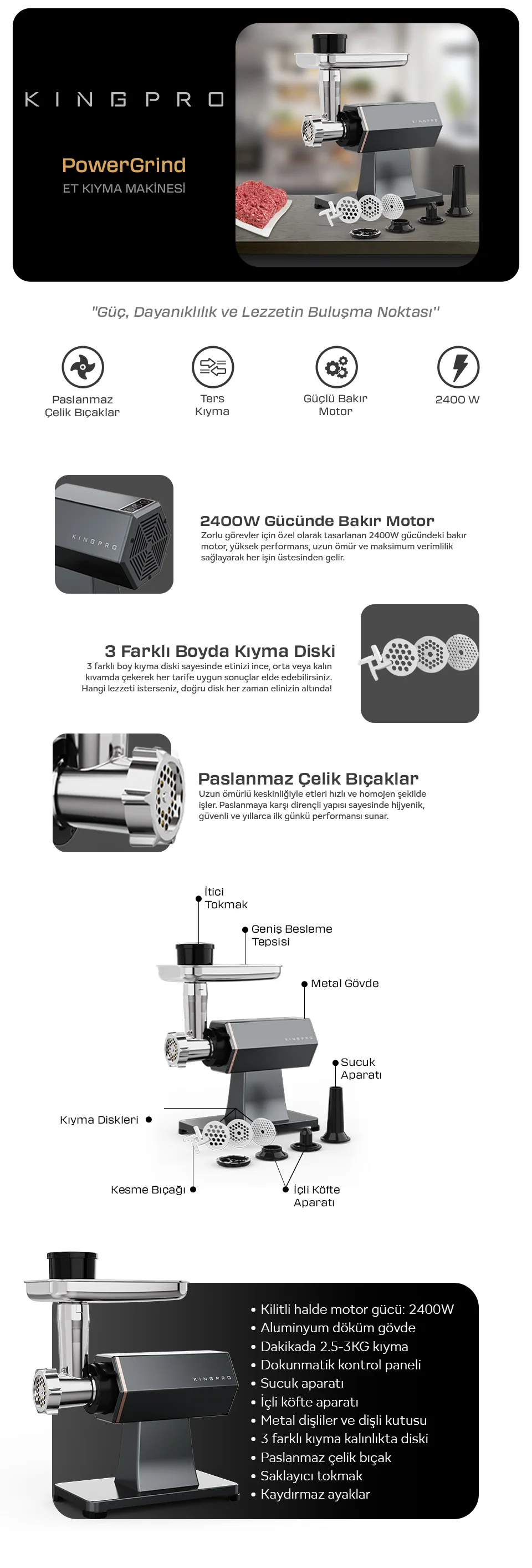 KINGPRO KKM694 Powergrind Et Kıyma Makinesi