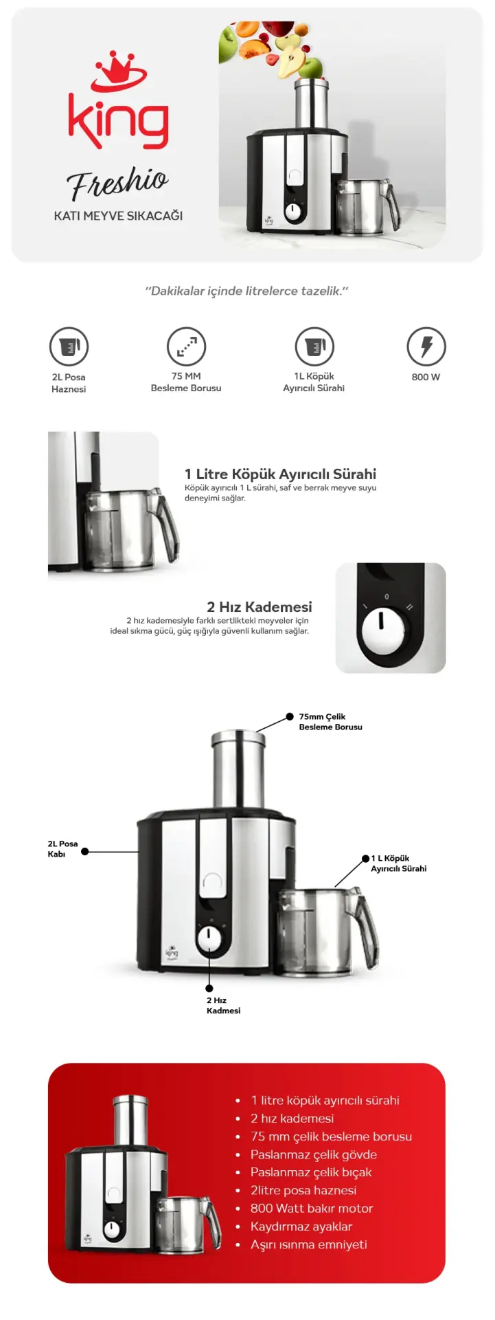 KİNG KKM1172 Freshio Katı Meyve Sıkacağı
